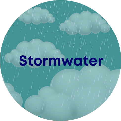 Rainfall on hard surfaces that flows into drains and is released into creeks, rivers, or the oceans.